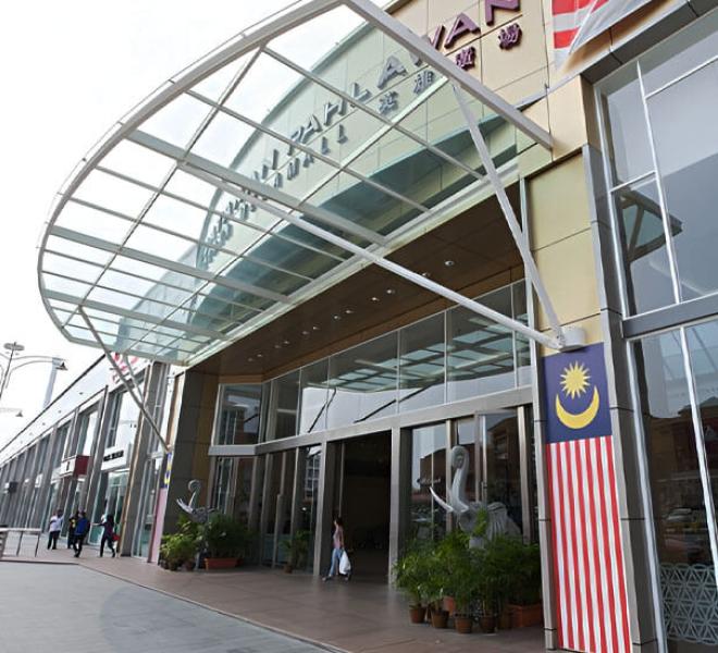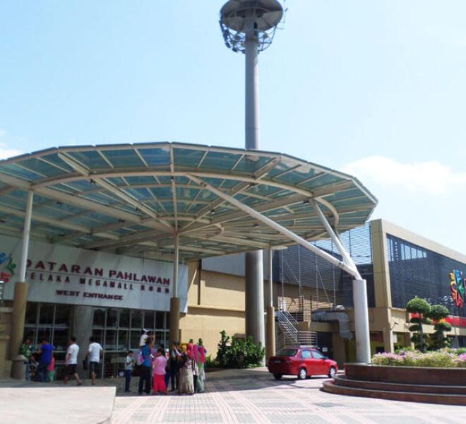Dataran Pahlawan Melaka Megamall is the largest shopping complex in Melaka, strategically located in the heart of the city near major tourist attractions. The mall spans over 1.3 million square feet of retail space across seven floors, housing more than 300 outlets including international fashion brands, local boutiques, electronics stores, and a comprehensive food court. The mall features several anchor tenants including Parkson Department Store, Giant Hypermarket, and Golden Screen Cinemas, making it a one-stop shopping destination for both locals and tourists. Its modern architecture contrasts with Melaka's historic surroundings while offering panoramic views of the city from its upper levels. The mall regularly hosts cultural events, festive celebrations, and promotional activities throughout the year, adding to its appeal as a retail and entertainment hub.