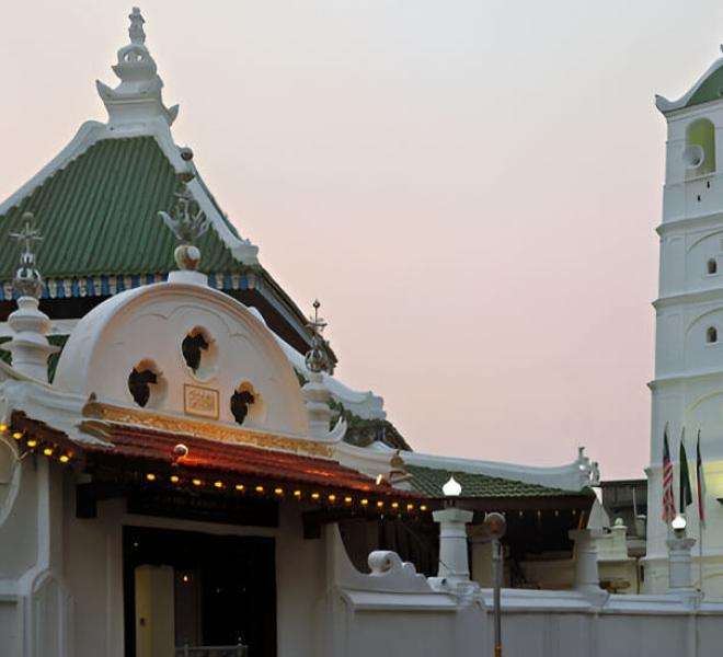 The mosque's interior showcases a blend of cultural influences through its decorative elements, including Chinese-style wooden screens, Malay timber construction techniques, and Indian-influenced geometric patterns. The main prayer hall features traditional Islamic calligraphy alongside decorative elements that reflect the cultural backgrounds of its founding community. The mosque's courtyard contains a ceremonial well and ablution areas designed in traditional Islamic style but constructed using local materials and techniques. The mosque serves the Indian Muslim community (primarily Tamil Muslims) and conducts prayers in multiple languages, including Arabic, Malay, and Tamil, reflecting the diverse linguistic heritage of its congregation. The mosque's historical significance extends beyond its architectural uniqueness - it represents the successful integration of immigrant communities into Malaysian society while maintaining their distinct cultural and religious identities.
