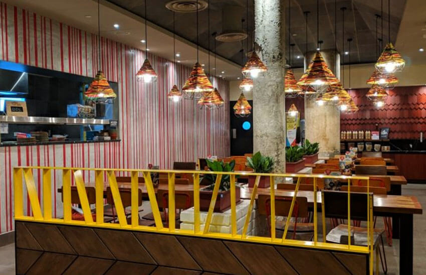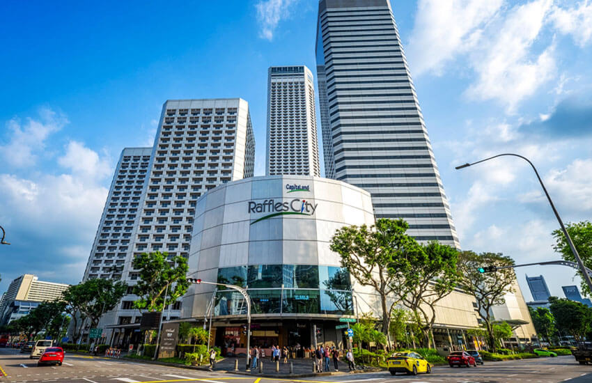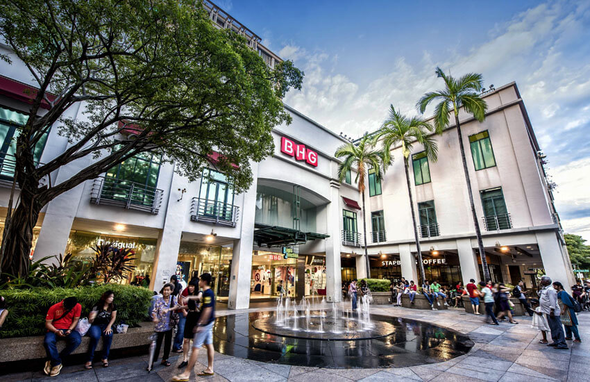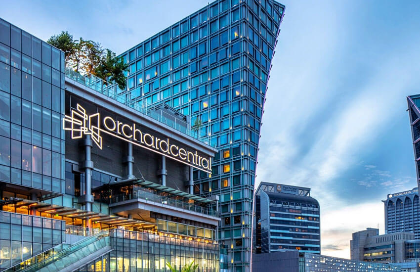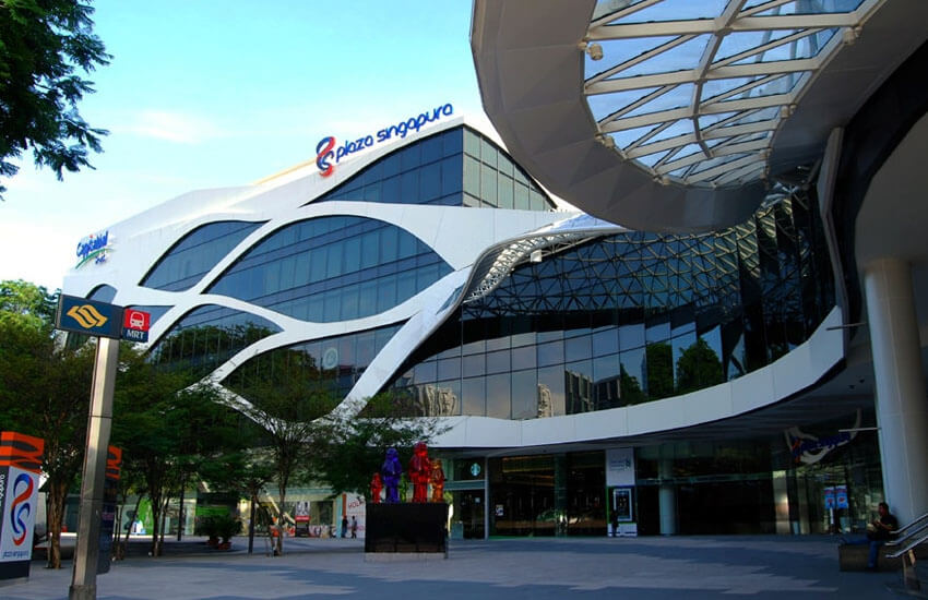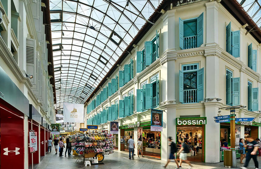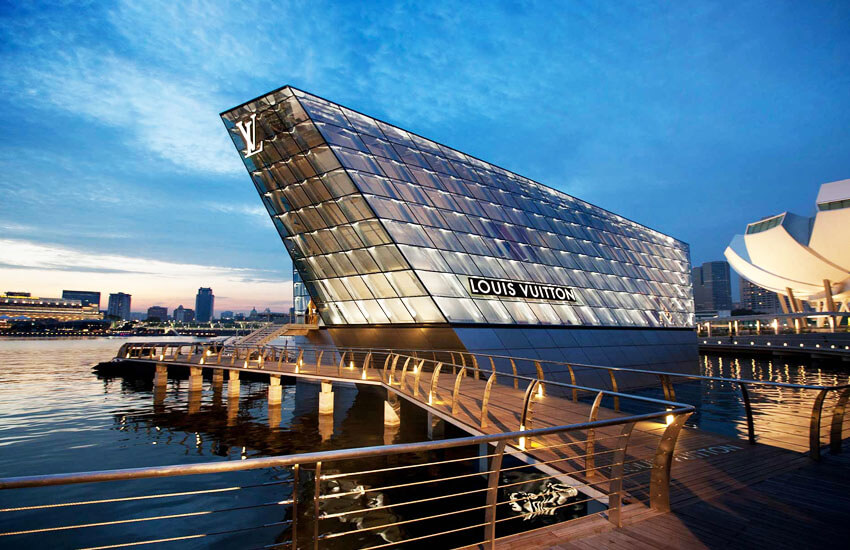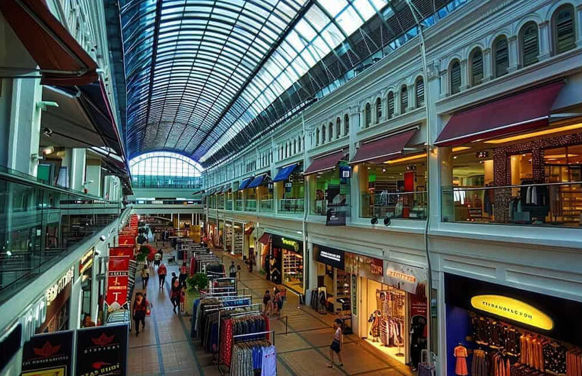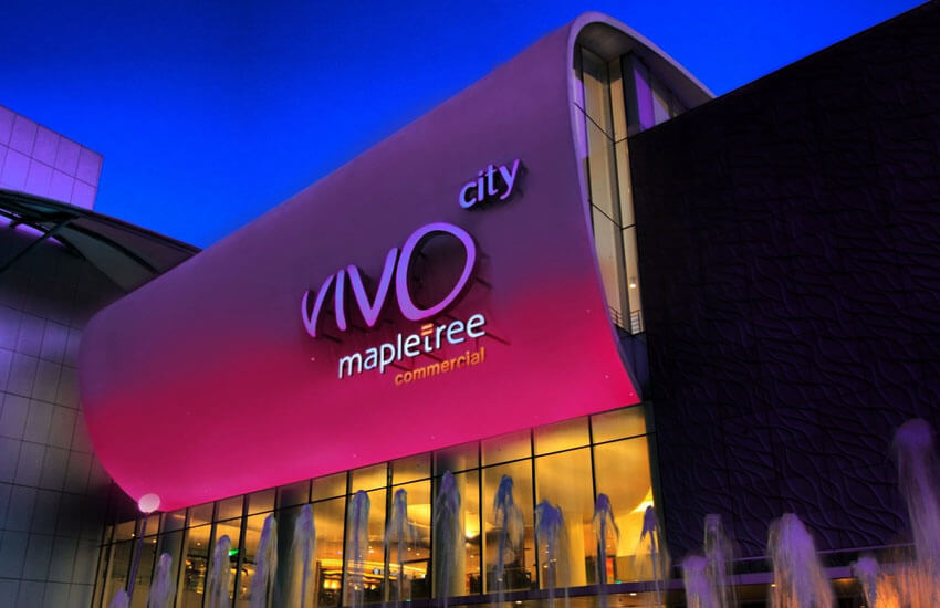Vertical shopping mall featuring outdoor escalators and terraces.